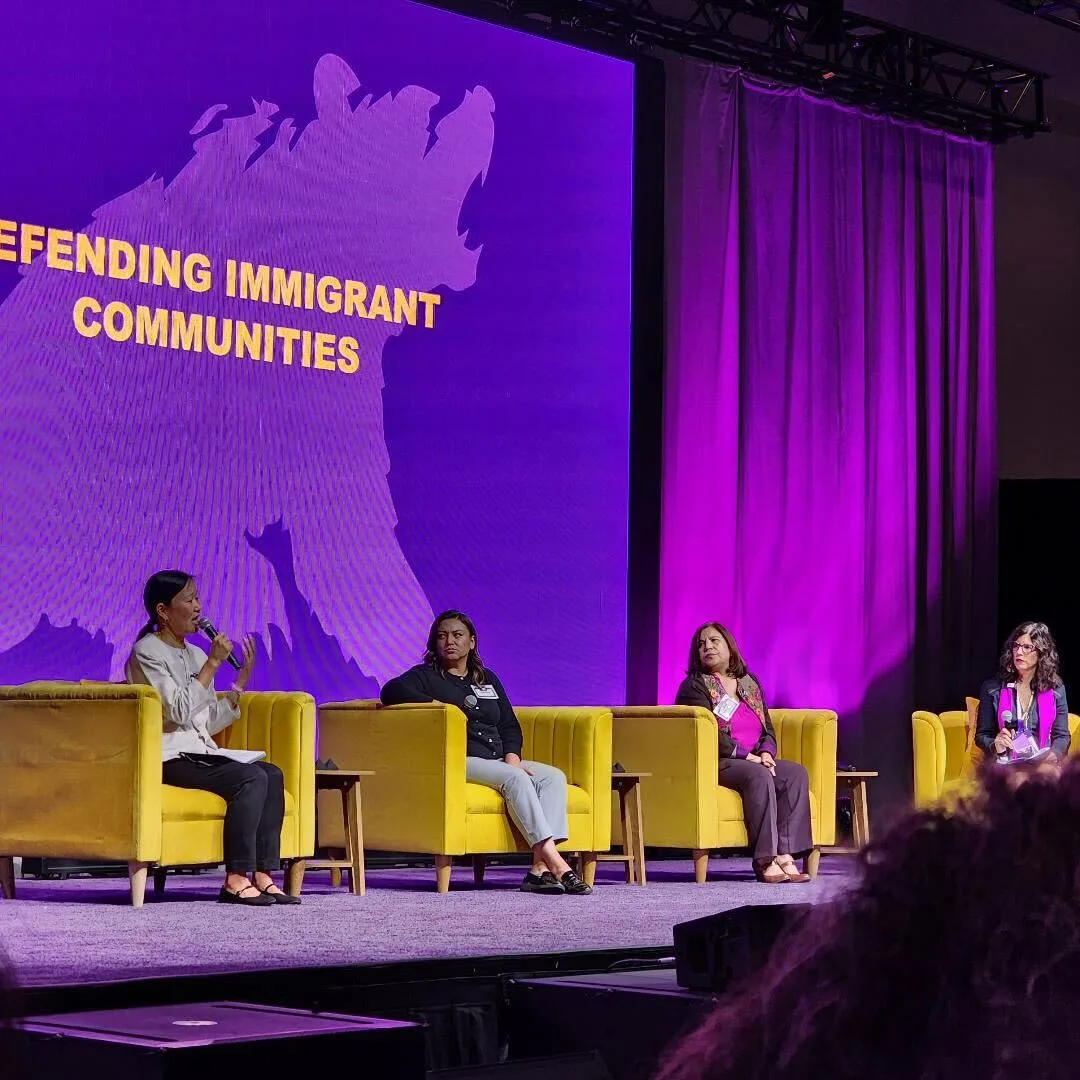President Berta-Ávila also facilitated the “Defending Immigrant Communities” panel, alongside SEIU Local 99 Executive Director Max Arias. This panel featured Angelica Salas, executive director of CHIRLA; Flor Melendrez, executive director of the CLEAN Carwash Campaign; Becky Belcore, co-director of NAKASEC; and Martha Arevalo, executive director of CARECEN and TPS Alliance. The panel centered on the work being done to protect our immigrant workers and communities throughout the state, and what work needs to be done in order to continue the fight for immigrant rights.