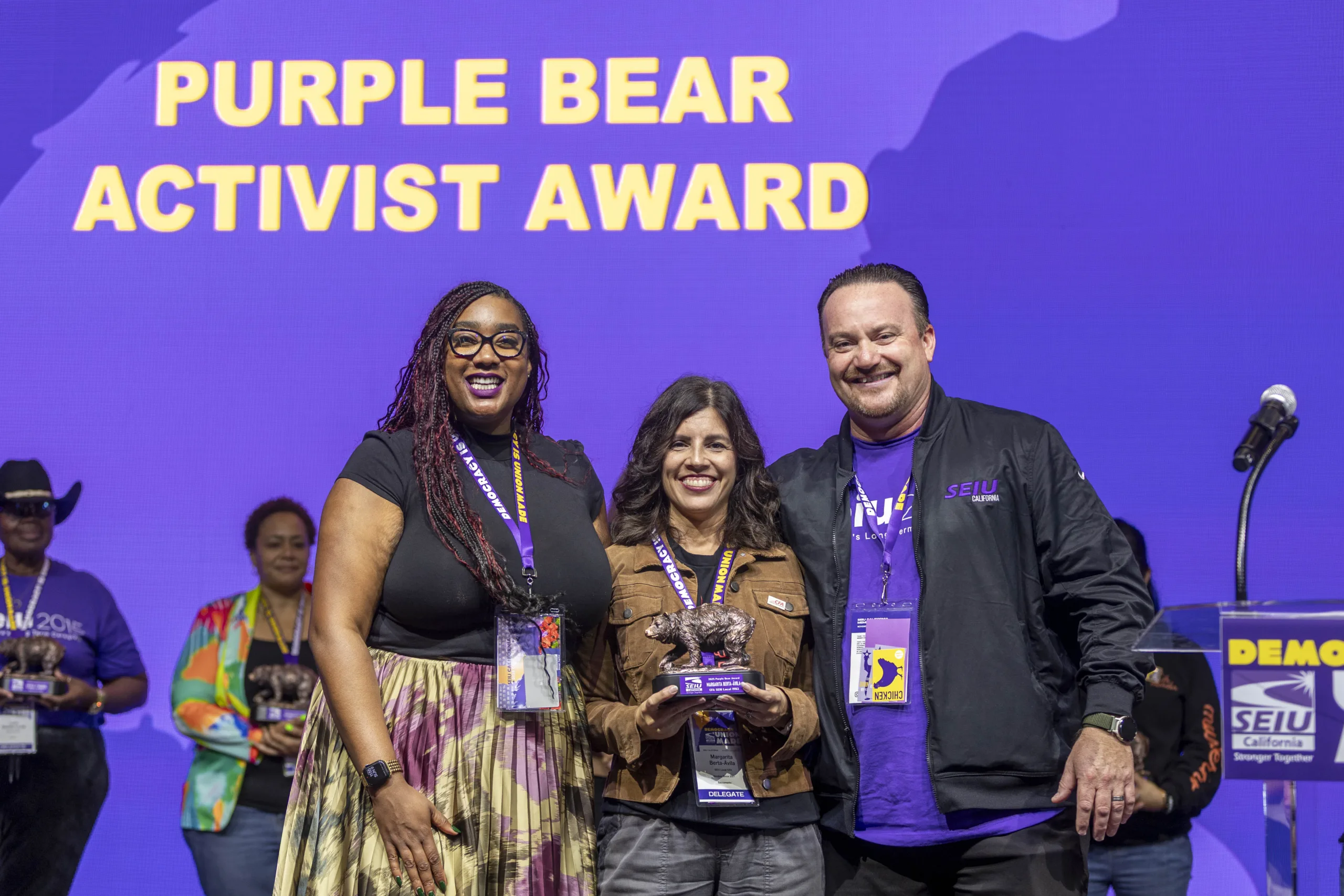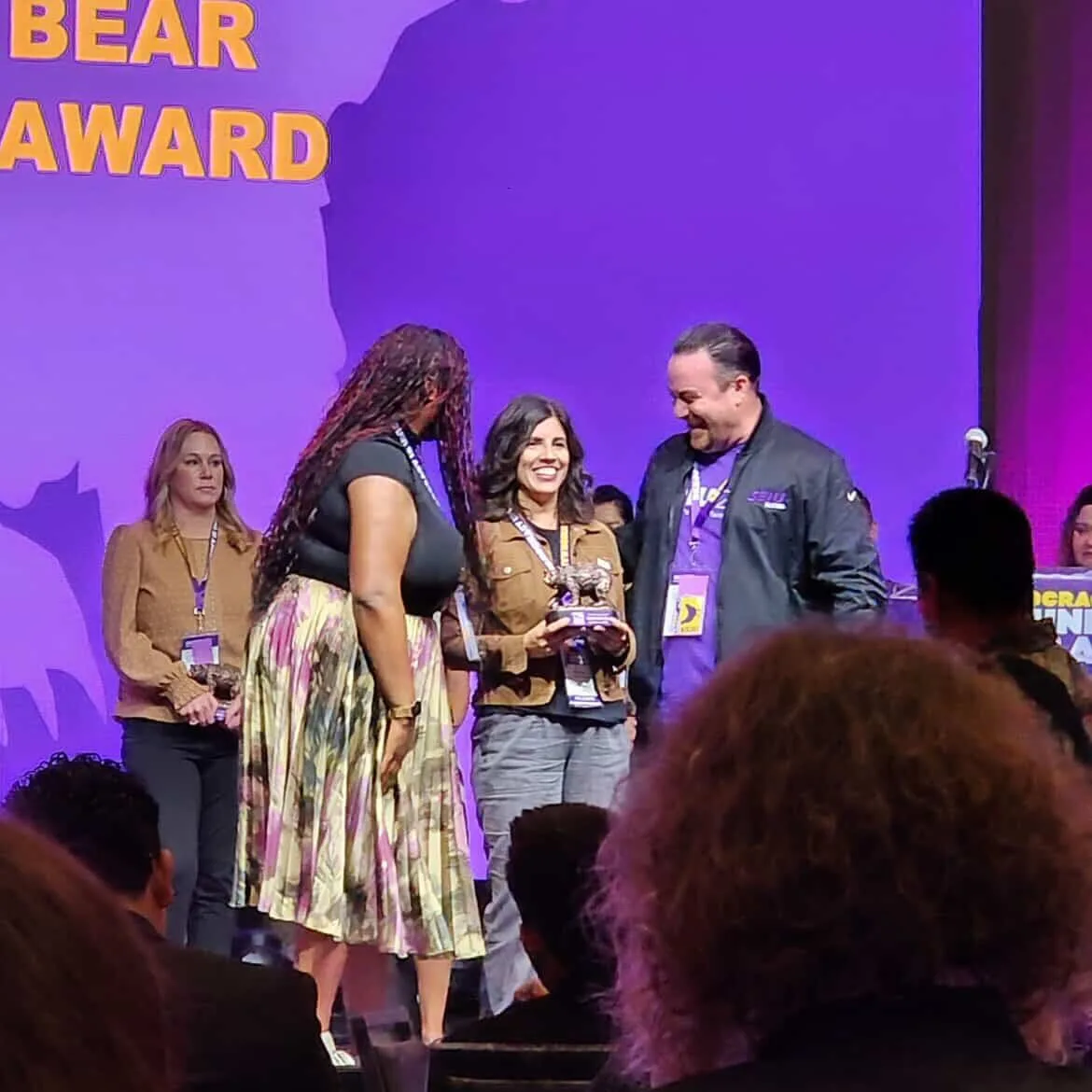 To conclude the convention, President Berta-Ávila was awarded the SEIU CA Purple Bear Activist Award to recognize the work and leadership she has demonstrated during her time with CFA and among her communities.