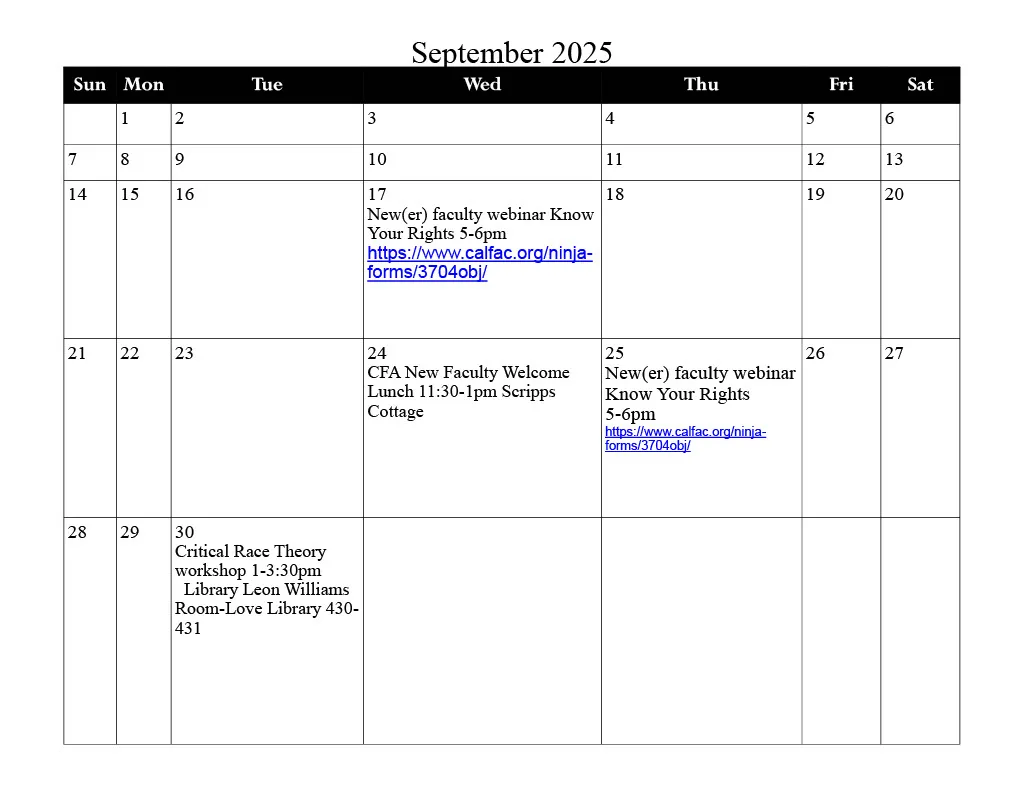 Unionwide Webinar for New(ish) Faculty Wed Sep 17, and Thu Sep 25, 5-6pm. Register here